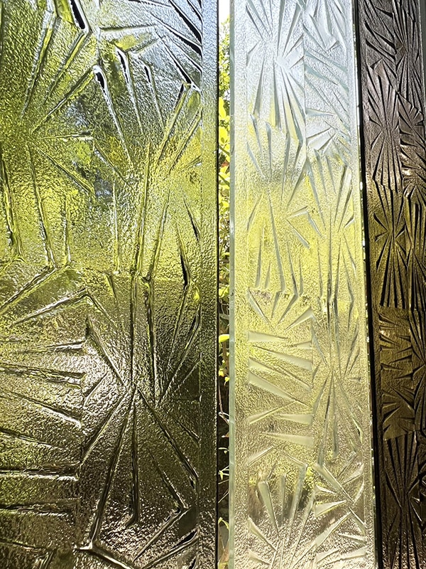 3片一組,可選不同顏色顏色選擇:透明玻璃、灰玻璃、藍玻璃、綠玻璃、茶玻璃尺寸:寬 26cm × 高 191cm × 厚 0.8cm材質:浮雕琉璃